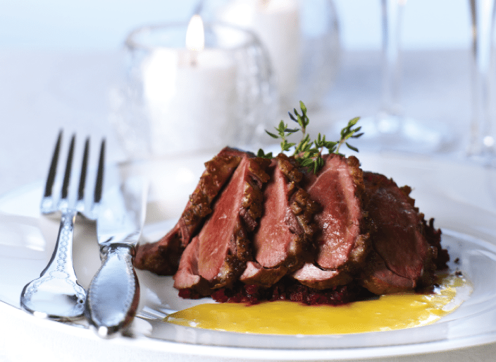 This six-ingredient chocolate pie takes only about 30 minutes to prepare. But it’s bound to lead to at least 30 more years of pleading with you to make again. The pie features over a pound of chocolate, juicy cherries, and a crust with a crunch – all nestled into a no-bake pie. What doesn’t have: any of the main allergens or gluten.