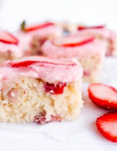 - All those strawberries – the fresh berries make the cake even more delicious, they help create the frosting’s lovely pink shade, and they also work as decoration. Just add a few slices strawberries on top of the cake and it looks amazing.