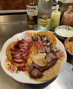 I typically ordered a beef or pork taco, which was composed of marinated meat on a fresh tortilla. As I’d anticipated, tacos were always served without any toppings – just meat, tortilla, and sometimes cheese. If I added toppings to my tacos, I only did so with what I knew was safe, like squeezing lime juice on top, or adding chopped onion, cilantro, and green salsa. The salsas were usually kept in containers away from the fresh herbs and vegetables, which also helped me to avoid cross-contact.